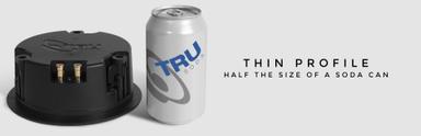 True Audio - Thin in-ceiling speaker, 5" injected poly woofer, 1" silk soft dome tweeter, includes backbox, less than 2.5" deep, 5-75 watts, 8O. Sold each.